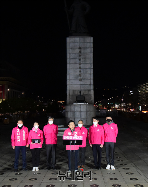 황교안 미래통합당 대표가 1일 서울 종로구 광화문 광장에서 열린 '나라 살리기·경제 살리기 출정 선언' 기자회견에서 발언을 하고 있다.