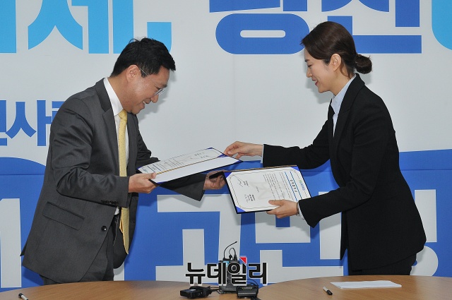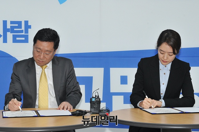 [포토] 고민정 후보, 민주연구원과 공약이행 정책 협약