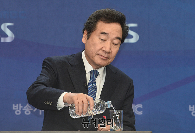 제21대 국회의원선거에서 서울 종로구에 출마한 이낙연 더불어민주당 상임공동선대위원장이 2일 오전 서울 양천구 방송회관에서 열린 방송기자클럽 초청 토론회에 참석해 물을 마시고 있다.