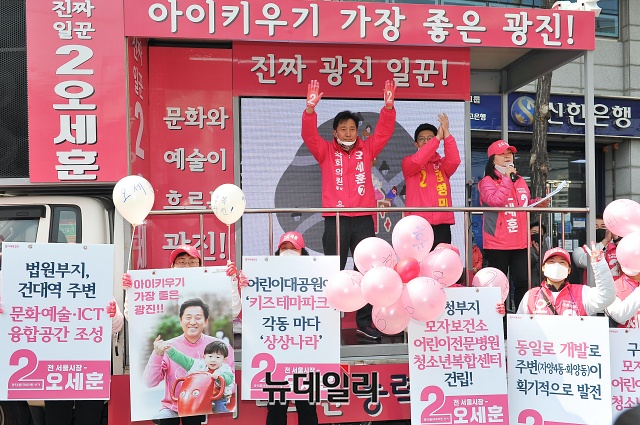 [포토] 지지 호소하는 오세훈 광진을 후보
