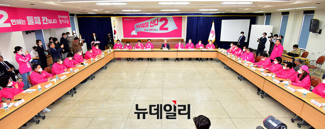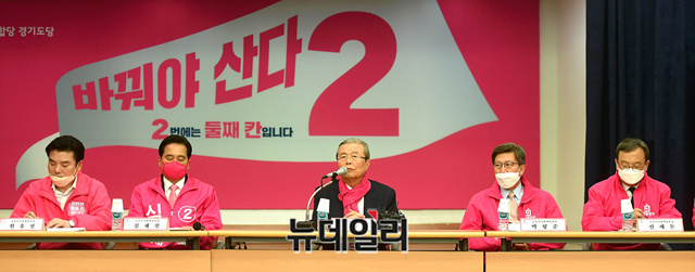 김종인 미래통합당 총괄선대위원장이 2일 오전 경기 수원시 경기도당에서 열린 경기권역 선거대책위원회 회의에서 모두 발언을 하고 있다. 이날 회의에는 김 위원장을 비롯해 선대위지도부, 경기권역 후보, 미래한국당 비례대표 등이 참석했다. (경기 수원=정상윤 기자)