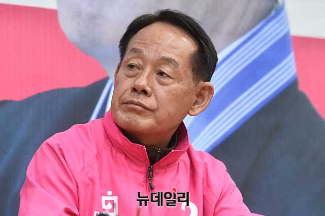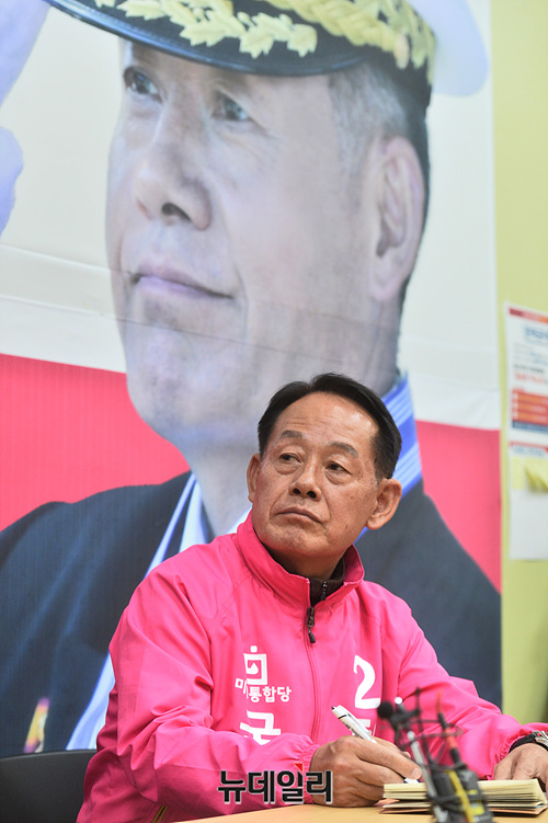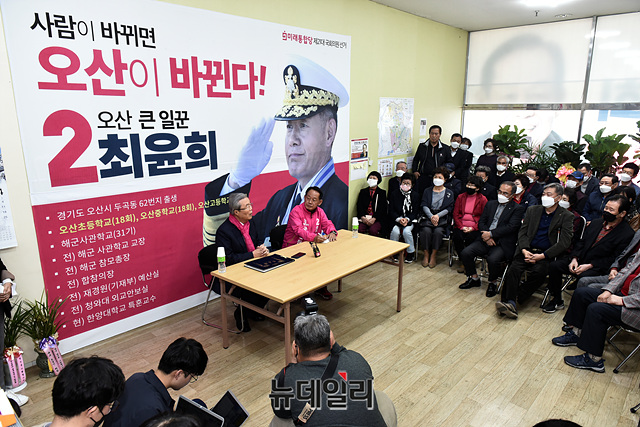 최윤희 미래통합당 오산시 후보가 2일 오후 경기 오산시 본인의 사무실에서 김종인 총괄선대위원장의 발언을 귀담아 듣고 있다. (경기 오산=박성원 기자)