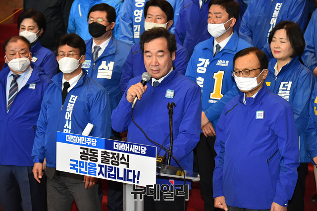 [포토] 민주당·시민당 총선 선대위 공동 출정식, 발언하는 이낙연