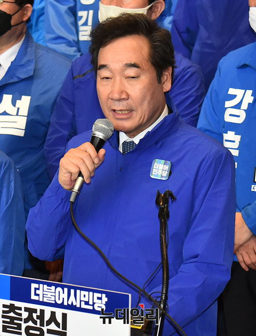 이낙연 더불어민주당 상임공동선대위원장이 2일 오후 국회에서 열린 더불어민주당·더불어시민당 제21대 총선 중앙선대위원회 공동 출정식에서 발언을 하고 있다.