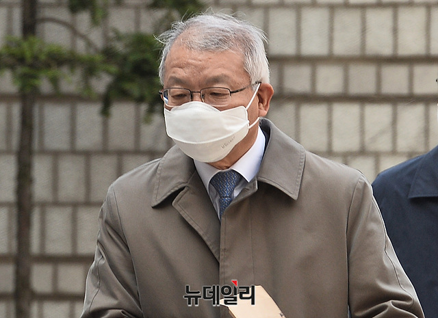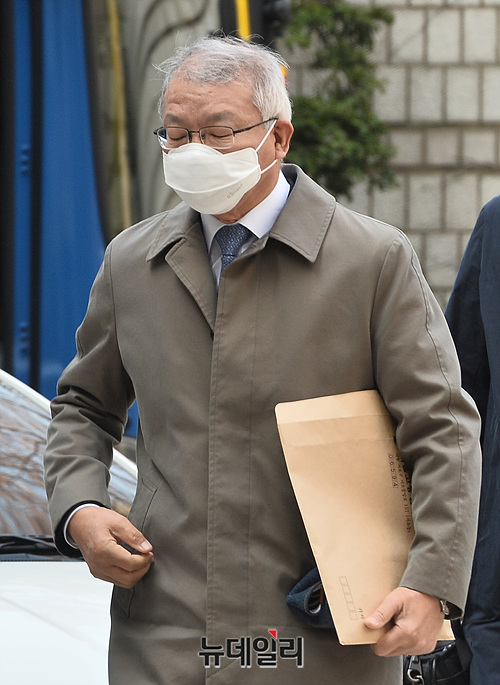 양승태 전 대법원장이 3일 오전 서울 서초구 서울중앙지법에서 열린 속행공판에 출석하고 있다.