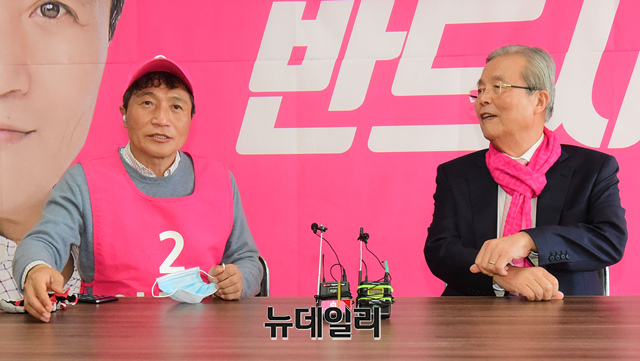김종인 미래통합당 총괄선대위원장이 3일 오후 인천 서구 이학재 미래통합당 21대 총선 인천 서구(갑) 후보 사무실에 방문해 이 후보를 격려하고 있다. (인천=이종현 기자)