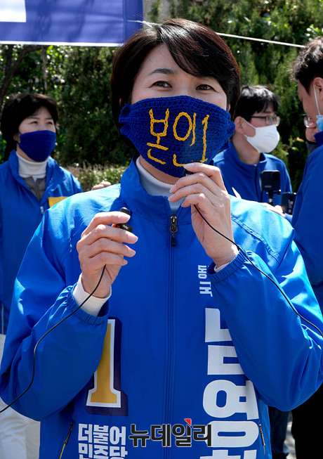 남영희 더불어민주당 인천 동구미추홀구을 후보가 4일 오후 인천 미추홀구 토지금고시장에서 선거유세 중 취재진 질문에 답하고 있다. (인천=장세곤 기자)