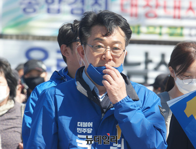 허종식 더불어민주당 인천 동구미추홀구갑 후보가 4일 오후 인천 미추홀구 신기시장에서 상인들과 대화를 나누고 있다. (인천=장세곤 기자)