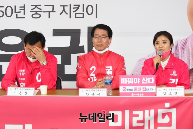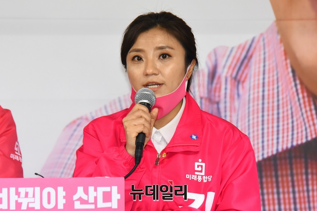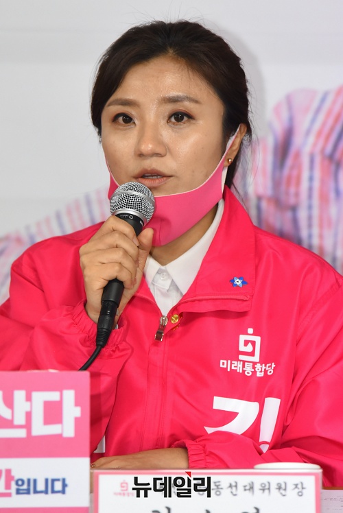 김소연 미래통합당 대전 유성구을 후보가 5일 오전 대전 중구 선거사무소에서 열린 대전 권역 선거대책위원회 회의에서 발언을 하고 있다. (대전=권창회 기자)
