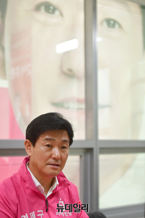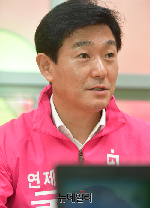 이주환 미래통합당 부산 연제구 국회의원 후보가 지난달 26일 부산 연제구 선거사무소에서 선거전략에 관한 인터뷰를 갖고 있다. 부산 연제구는 김해영 민주당 후보, 이주환 통합당 후보, 박재홍 민생당 후보가 출마한다. (부산=정상윤 기자)