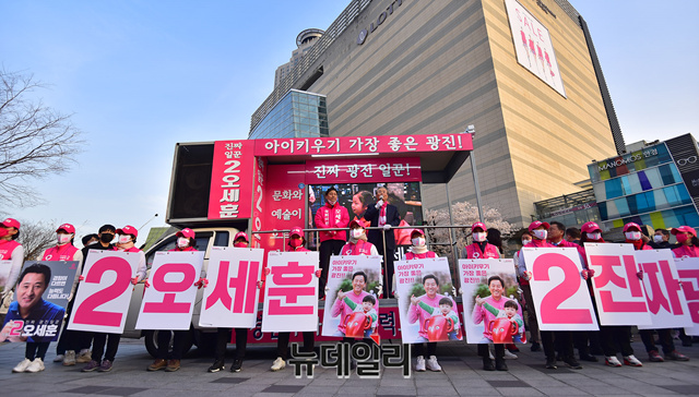 [포토] 오세훈 지원사격 차 광진구 찾은 김종인