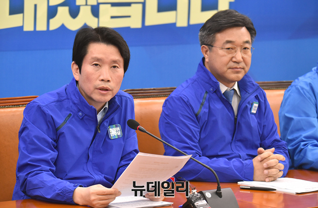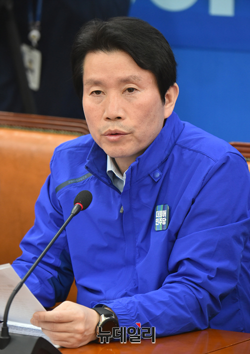 이인영 더불어민주당 원내대표가 7일 오전 국회에서 열린 현안점검회의에서 모두발언을 하고 있다.