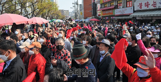 [포토] 황교안 후보 동묘시장 유세에 몰린 인파