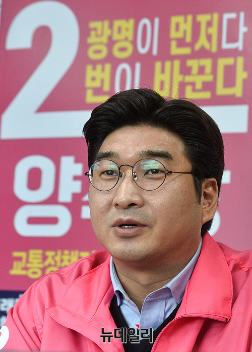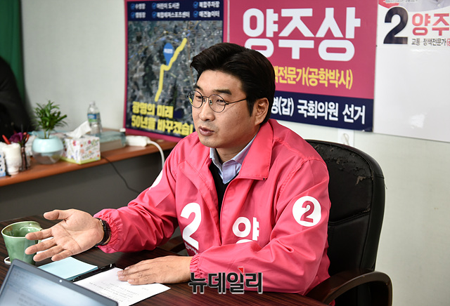 4.15총선에서 경기 광명시갑에 출마하는 양주상 미래통합당 국회의원 후보가 6일 경기 광명시 선거사무실에서 뉴데일리와 인터뷰를 갖고 있다.