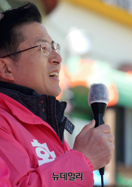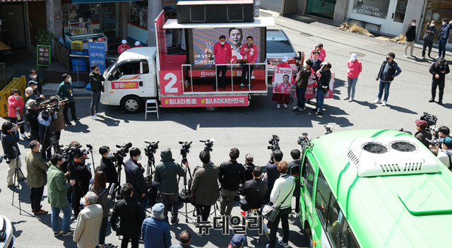 황교안 미래통합당 종로구 후보가 8일 오전 서울 종로구 옥인길 인근에서 거리 유세를 하고 있다.