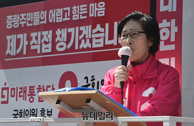 [포토] 지지호소하는 김삼화 통합당 중랑갑 후보