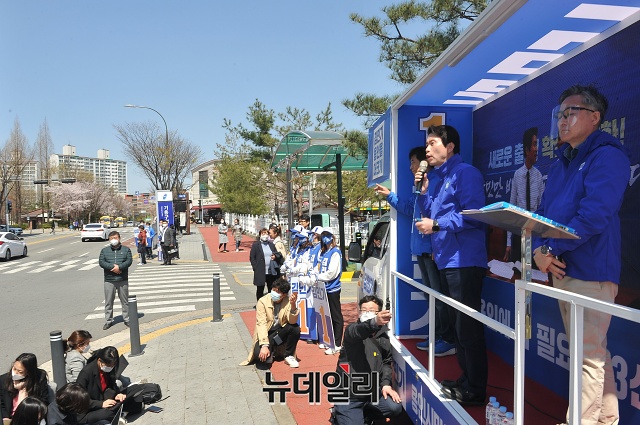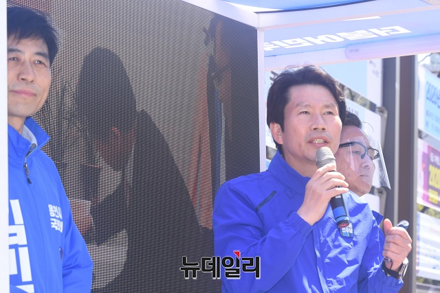 [포토] 용인 기흥구청서 지지호소하는 이인영 민주당 공동선대위원장
