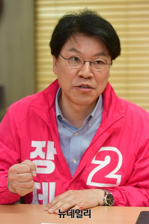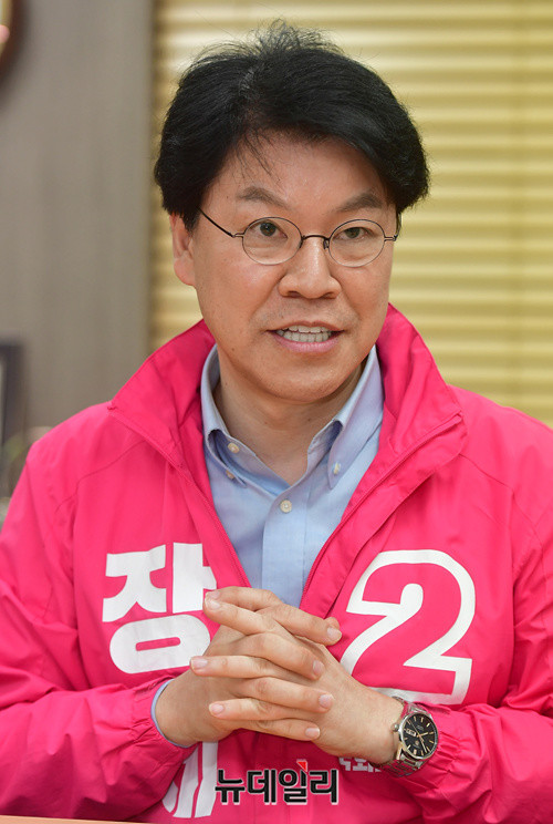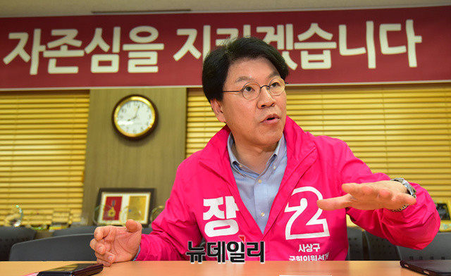 장제원 미래통합당 부산 사상구 국회의원 후보가 지난달 27일 부산 사상구 선거사무소에서 뉴데일리와 인터뷰를 갖고 있다. 부산 사상구 지역은 민주당 배재정, 통합당 장제원, 공화당 이주천, 배당금당 김준호 후보가 경쟁하고 있다. (부산=정상윤 기자)