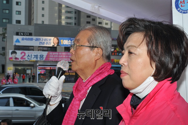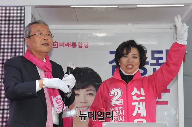 [포토] 신계용 후보 지원유세차 의왕시 찾은 김종인
