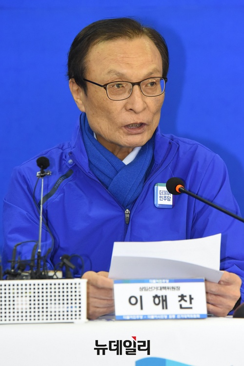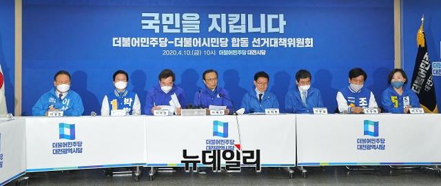 이해찬 더불어민주당 대표가 10일 오전 대전 중구 선거사무소에서 열린 더불어민주당-더불어시민당 합동 선거대책위원회에서 모두발언을 하고 있다. (대전=권창회 기자)