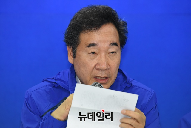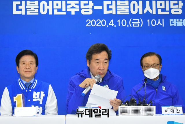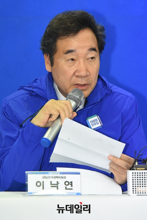 이낙연 더불어민주당 상임공동선대위원장이 10일 오전 대전 중구 선거사무소에서 열린 더불어민주당-더불어시민당 합동 선거대책위원회에서 발언을 하고 있다. (대전=권창회 기자)