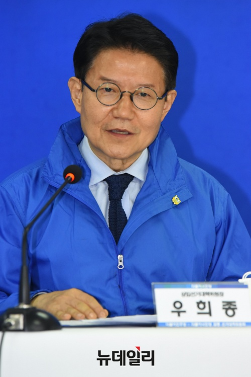 우희종 더불어시민당 상임선대위원장이 10일 오전 대전 중구 선거사무소에서 열린 더불어민주당-더불어시민당 합동 선거대책위원회에서 발언을 하고 있다. (대전=권창회 기자)