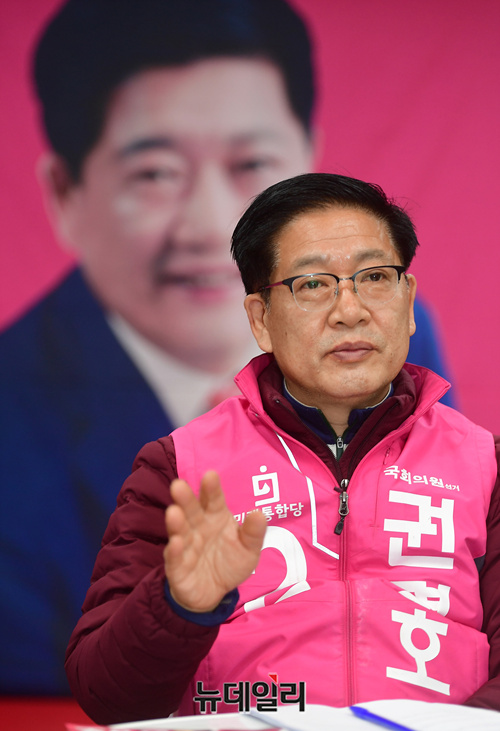 권명호 미래통합당 울산 동구 국회의원 후보가 지난달 27일 울산 동구 선거사무소에서 총선에 임하는 각오와 전략에 대해 뉴데일리와 인터뷰를 갖고 있다. 울산 동구 지역은 민주당 김태선, 통합당 권명호, 민중당 김종훈, 배당금당 우동열, 노동당 하창민 후보가 경쟁하고 있다. (울산=정상윤 기자)