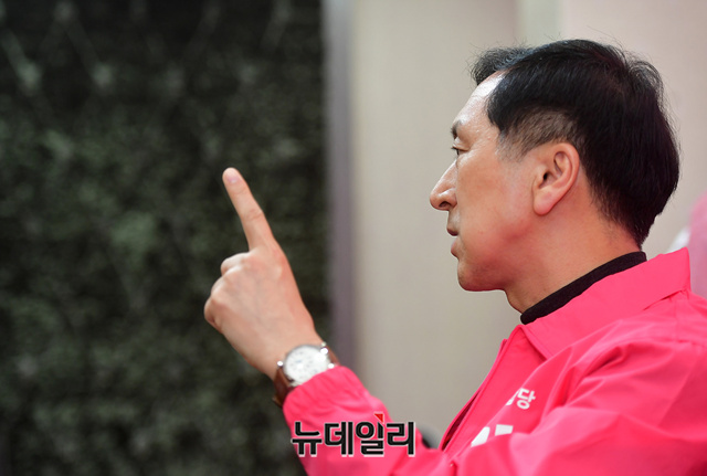 김기현 미래통합당 울산 남구을 국회의원 후보가 지난달 28일 울산 남구 선거사무소에서 선거전략에 관해 뉴데일리와 인터뷰를 갖고 있다. 울산 남구을은 민주당 박성진, 통합당 김기현, 배담금당 박병욱 후보가 맞붙는다. (울산=정상윤 기자)