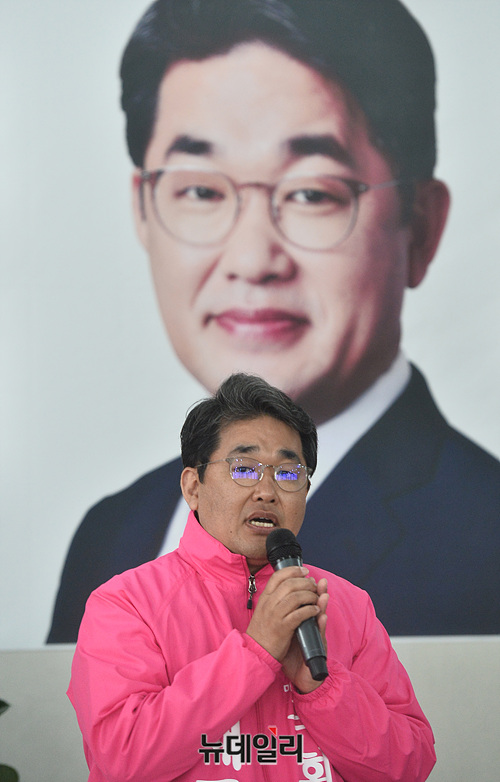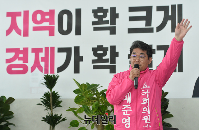 배준영 미래통합당 인천 중구강화옹진 후보가 11일 오전 인천 중구 본인의 선거사무실에서 지지를 호소하고 있다. (인천=박성원 기자)