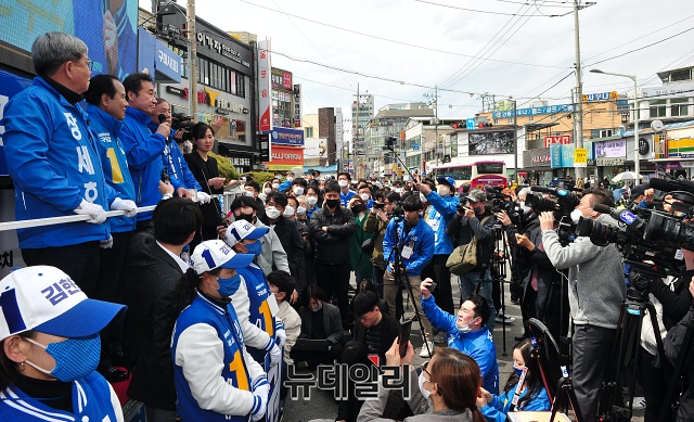 [포토] 경북 구미 후보자들 지원유세 나선 이낙연 선대위원장