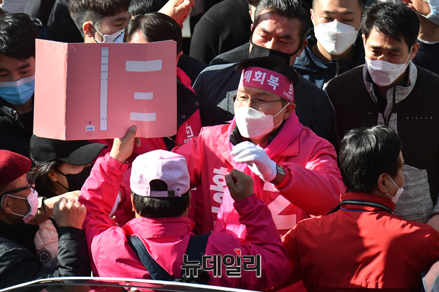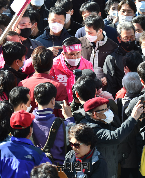 [포토] 지지자들에 둘러싸인 황교안 후보