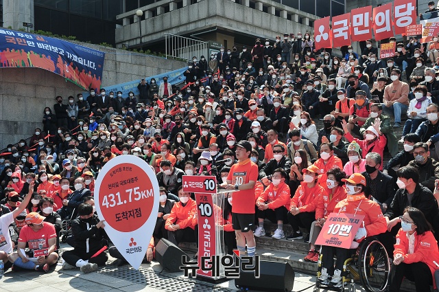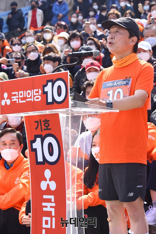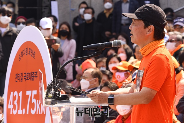 [포토] 431km 국토 종주 마치고 기자회견 갖는 안철수 국민의당 대표