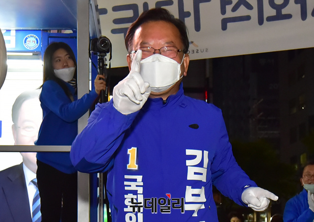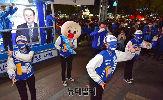 [포토] 선거운동 마지막 밤, 춤추는 김부겸
