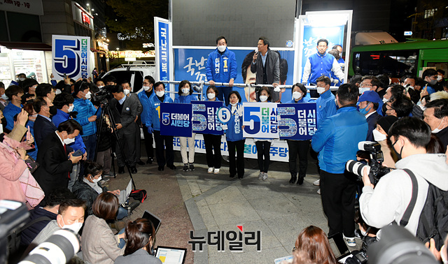 제21대 국회의원선거(이하 총선)를 하루 앞둔 14일 오후 임종석 전 대통령 비서실장이 서울 종로구 동묘앞역 인근에서 이낙연 더불어민주당 서울 종로구 후보 지지를 호소하고 있다.이번 총선은 국회의원 300명(지역구 253석·비례대표 47석)을 뽑는 선거로 15일(내일) 오전 6시부터 오후 6시까지 투표할 수 있다.만 18세 이상의 국민이면 투표 가능하며 본인의 주민등록증이나 여권, 운전면허증 등 신분증을 지참해야 한다. 또한 '코로나19(중국 우한 폐렴)' 확산 방지를 위해 투표장에서는 마스크를 꼭 착용해야 한다.