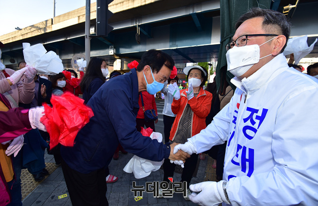 [포토] 지지자들과 악수나누는 무소속 정태옥 후보