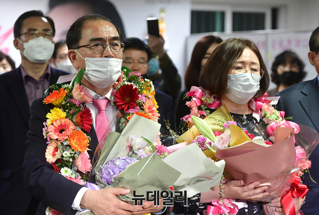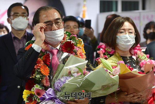 [포토] 당선 되자 애국가 부르며 눈시울 붉힌 태구민 내외