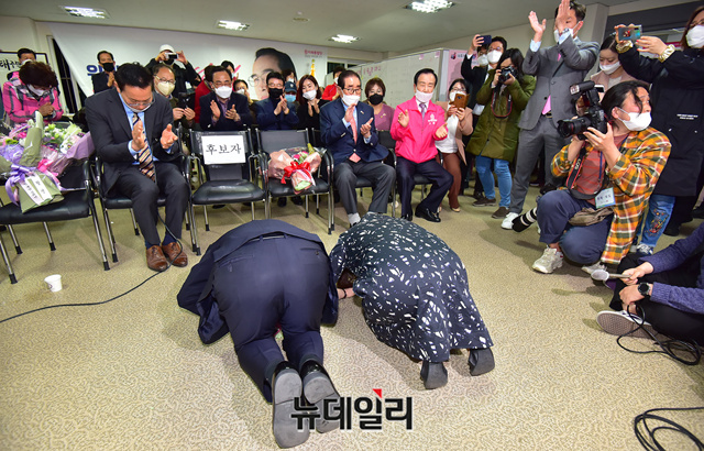 [포토] 당선 되자 애국가 부르며 눈시울 붉힌 태구민 내외