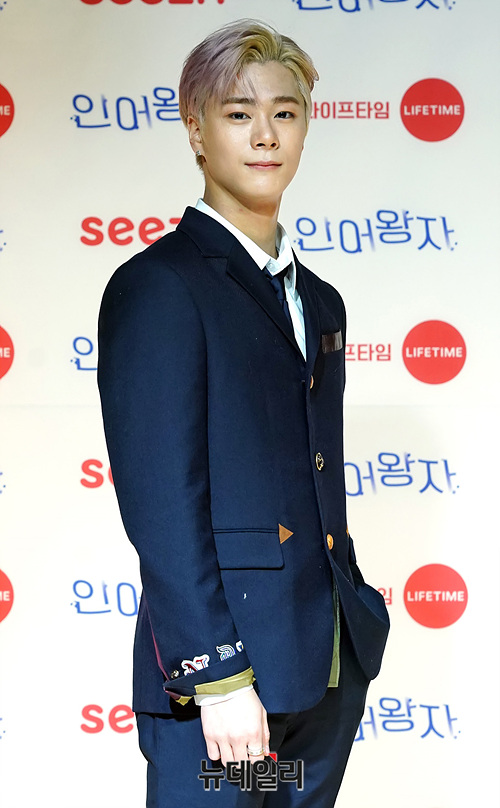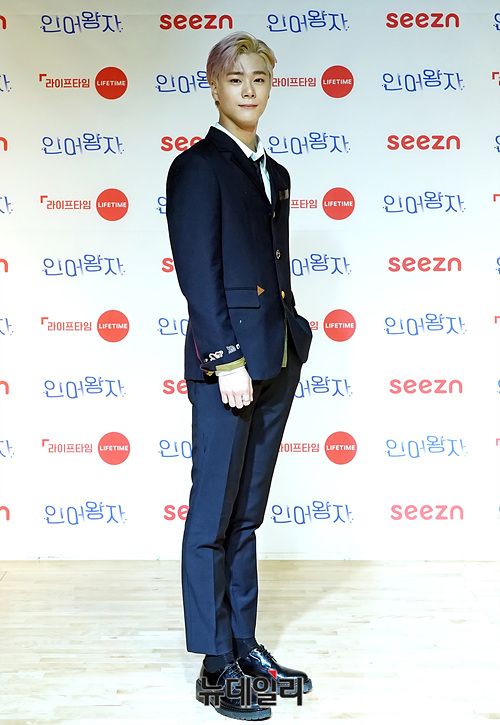 아이돌그룹 아스트로 문빈이 14일 오후 온라인으로 진행된 라이프타임채널 새 웹드라마 '인어왕자 : 너를 만지다' 제작발표회에서 포토타임을 갖고 있다.