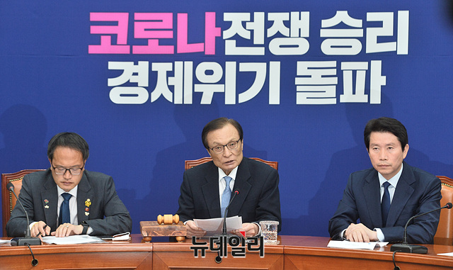 이해찬 더불어민주당 대표가 20일 오전 국회에서 열린 최고위원회의에서 모두발언을 하고 있다.