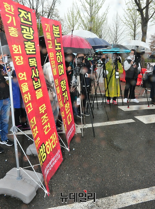 [포토] 전광훈 한기총 대표회장 석방 기다리는 지지자들