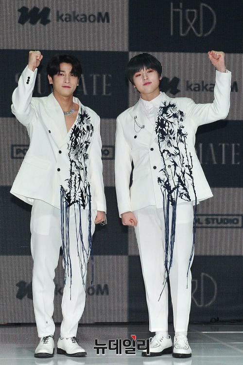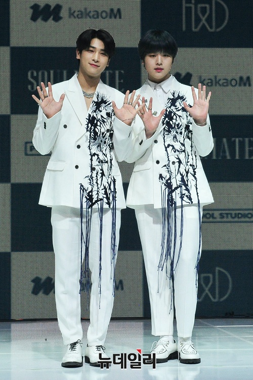아이돌그룹 H&D(이한결, 남도현)가 21일 오후 서울 마포구 메세나폴리스에서 열린 데뷔 미니앨범 'SOULMATE(소울메이트)' 쇼케이스에서 포토타임을 갖고 있다.