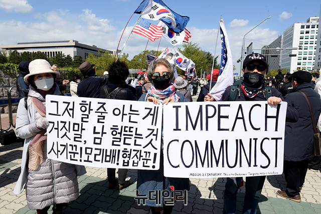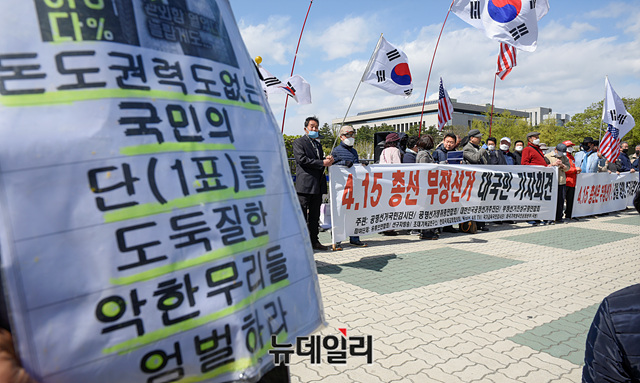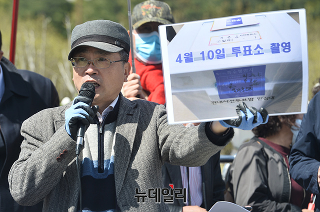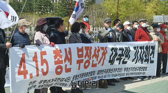 공명선거국민감시단, 공명선거쟁취총연합회, 대한민국공정선거추진단, 부정선거진상규명연합회 등이 21일 오후 국회 앞에서 4.15 총선 부정 선거 대국민 기자회견을 갖고 있다.이들은 "사전선거함 참관인 서명 대필 또는 바꿔치기, 부실한 사전투표함 보관관리와 조작 의혹 및 CCTV 미설치, 관외 사전투표지에 대한 허술한 우체국 이송 및 조작 의혹 등 각종 부정 사례가 드러났다"며 "총선 원천무효를 선언하고 5천만 국민의 동참하에 재검표 검증 실시 등을 요구한다"고 말했다.이어 "22일 11시 4.15총선 부정선거 관련자 고발 및 중앙선거관리위원회 규탄 기자회견을 대검찰청 앞에서 각각 개최한다"고 밝혔다.