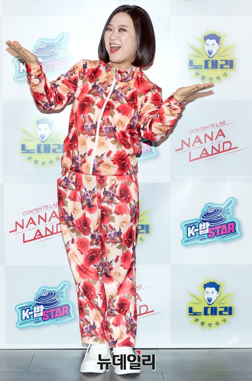 방송인 김숙이 21일 오전 온라인으로 진행된 '이영자, 김숙의 K-밥 STAR(케이밥스타)' 제작발표회에서 포토타임을 갖고 있다.