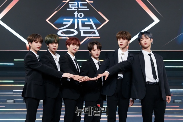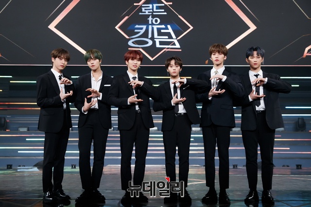 아이돌그룹 원어스가 21일 오후 온라인으로 진행된 Mnet 예능프로그램 '로드 투 킹덤' 제작발표회에서 포토타임을 갖고 있다.