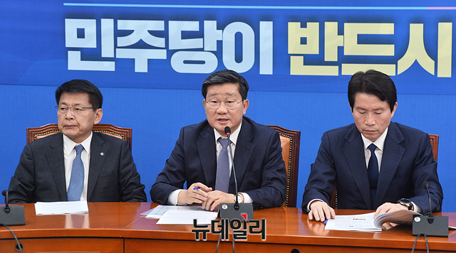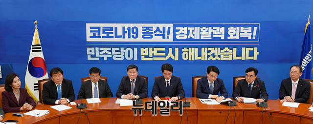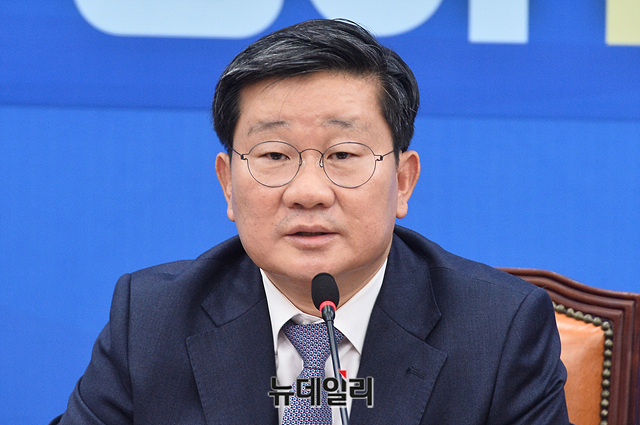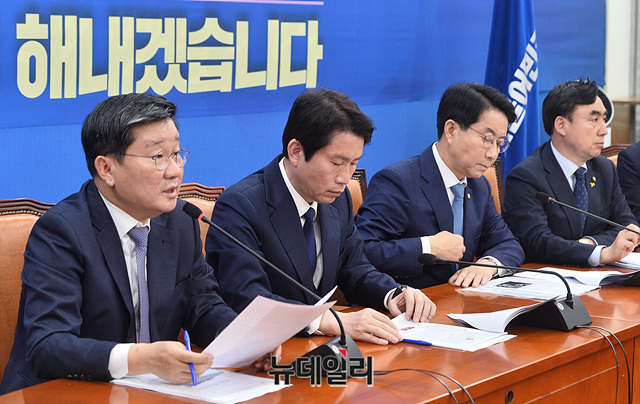 이인영 더불어민주당 예산결산특별위윈회 간사가 23일 오전 국회에서 열린 정책조정회의에서 모두발언을 하고 있다.