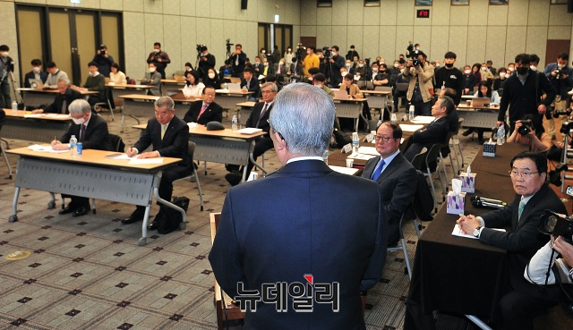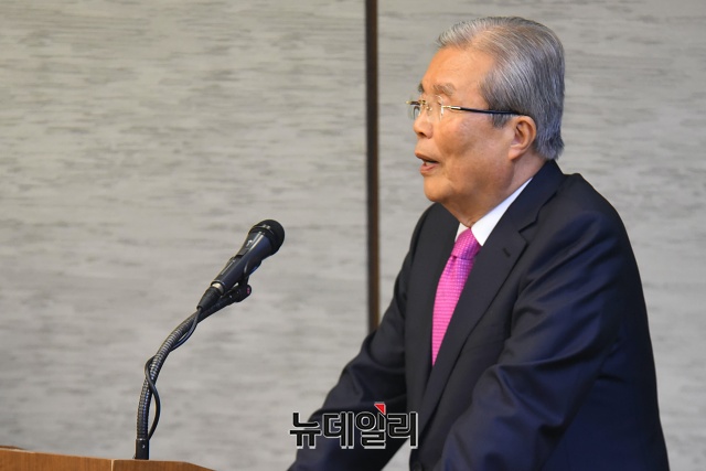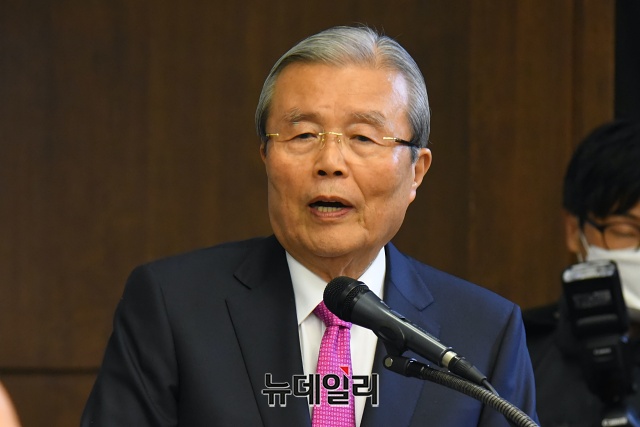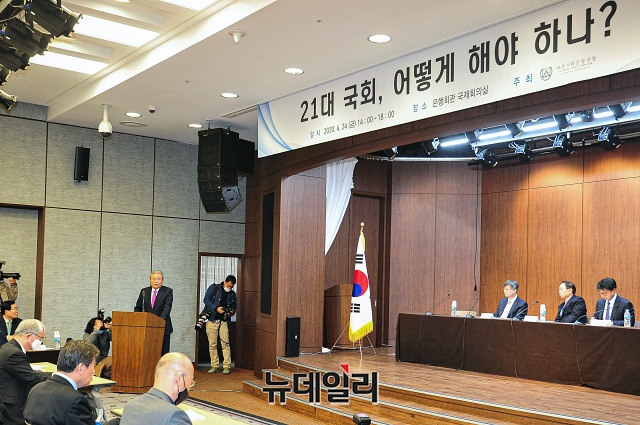 김종인 대한발전전략연구원 이사장이 24일 오후 서울 중구 은행회관에서 바른사회운동연합이 주최한 '21대 국회, 어떻게 해야하나' 토론회에서 격려사를 하고 있다.