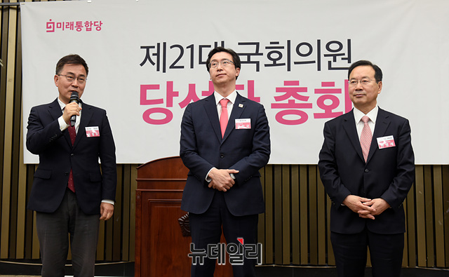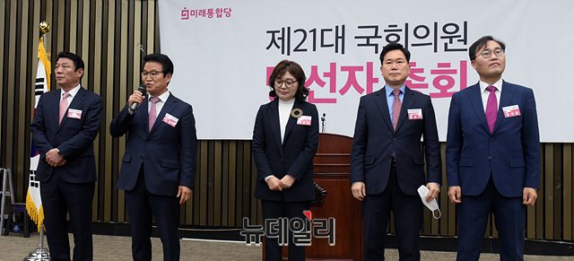 제21대 총선 미래통합당 당선자들이 28일 오전 국회에서 열린 미래통합당 제21대 국회의원 당선자 총회에서 각각 인사말을 하고 있다.