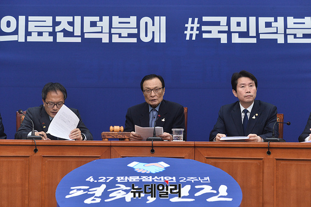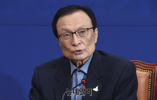 이해찬 더불어민주당 대표가 29일 오전 국회에서 열린 최고위원회의에서 모두발언을 하고 있다.