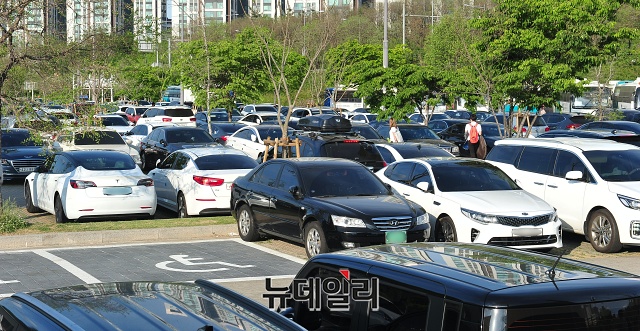 [포토] 나들이객 차량으로 가득 찬 반포 한강공원 주차장