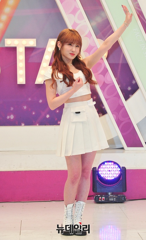 걸그룹 공원소녀 멤버 서령이 4일 오전 서울 마포구 에스플렉스 센터에서 열린 팩트인스타 공개녹화 전 포토타임을 갖고 있다.
